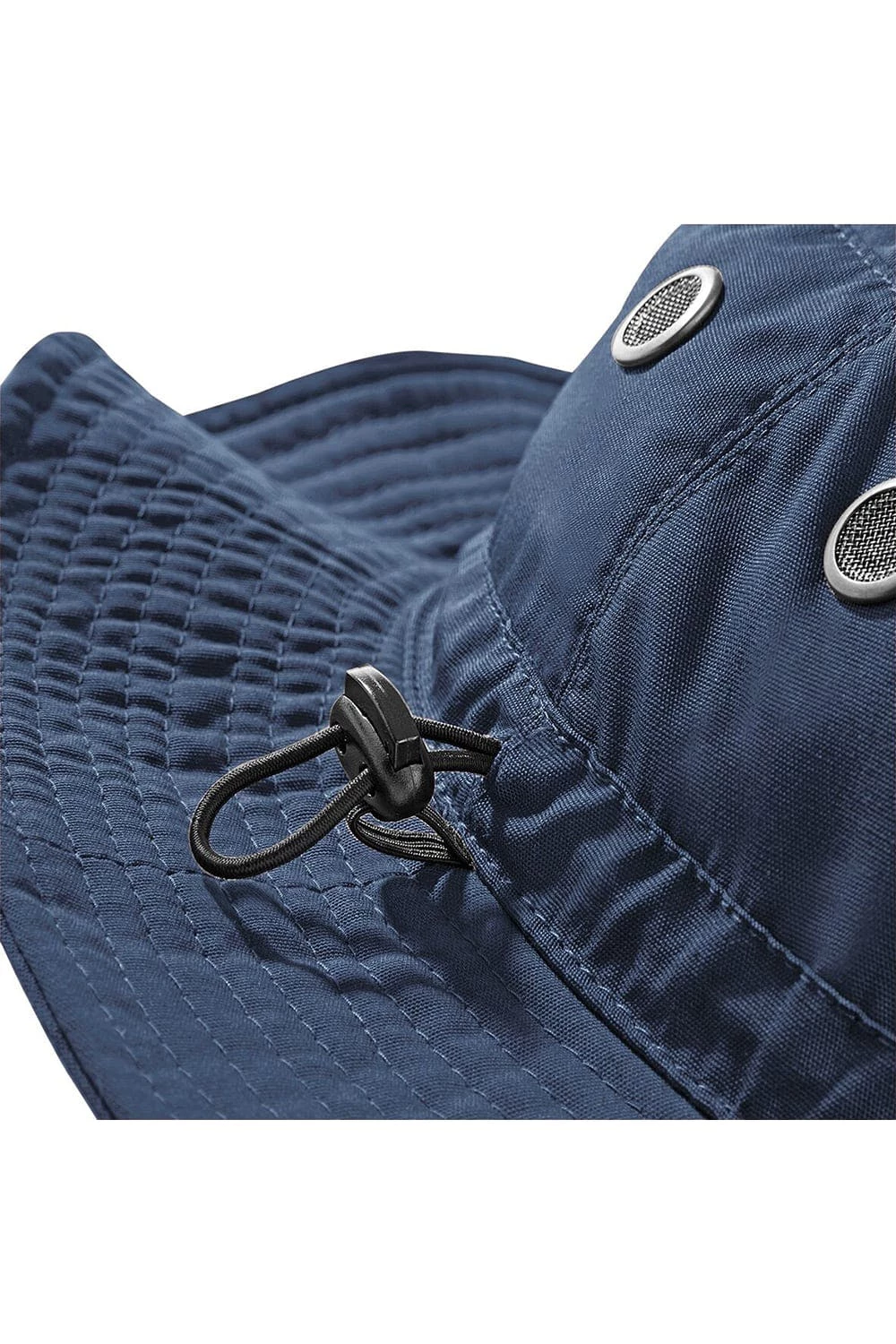 – Sandwich brim- Towelling sweat band with mesh lining for extra comfort- Elasticated drawcord size adjuster with toggle- Protection against sunlight – UPF50+- Size one- Size adjustable
