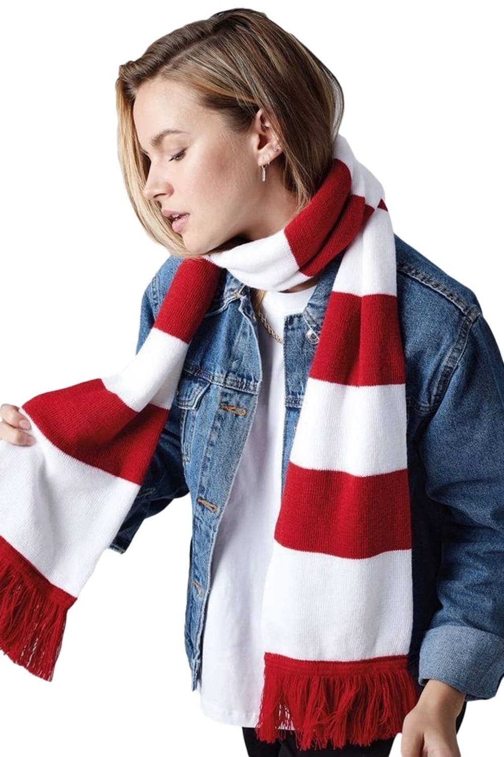 Beechfield Varsity Unisex Winter Scarf (Double Layer Knit) (Classic Red / White)