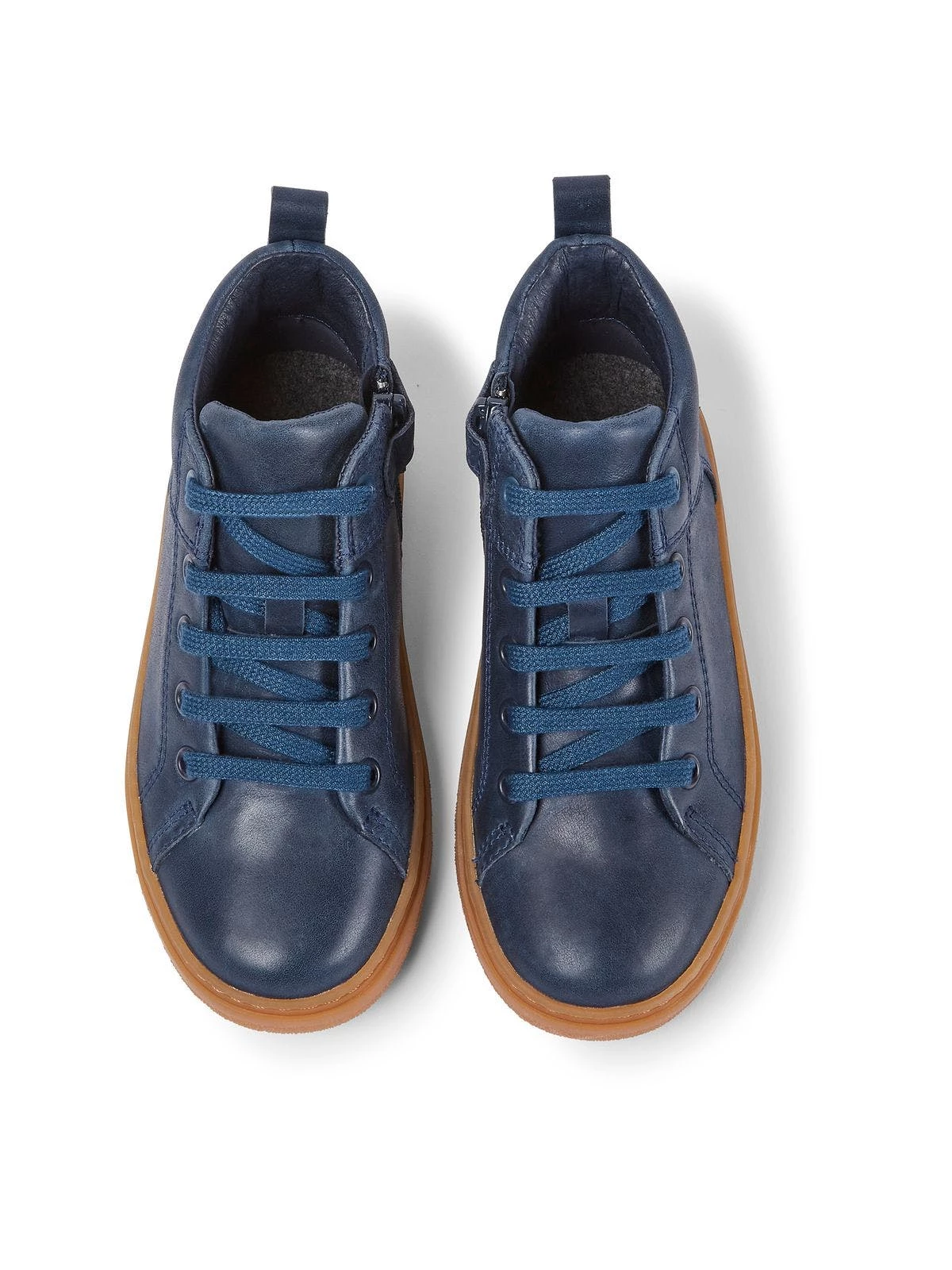 Blue leather ankle boots for kids with OrthoLite® removable footbed and 100% rubber outsoles (20% recylced).Kiddo offers a fresh look that’s extra comfortable and practical thanks to its durable design.