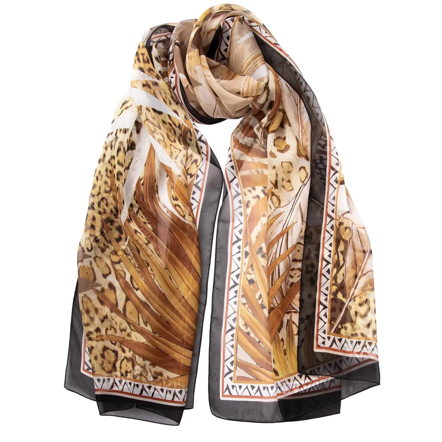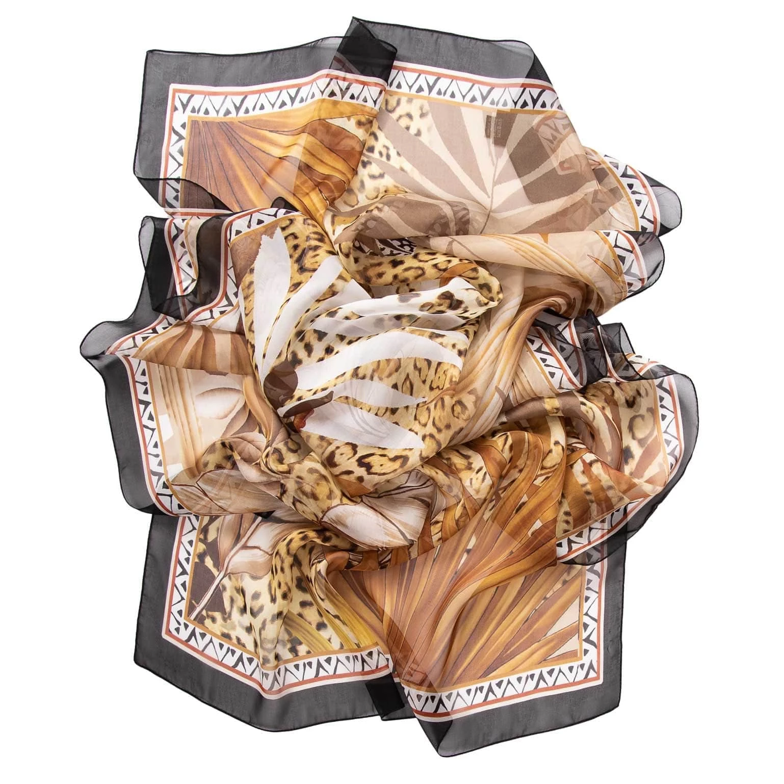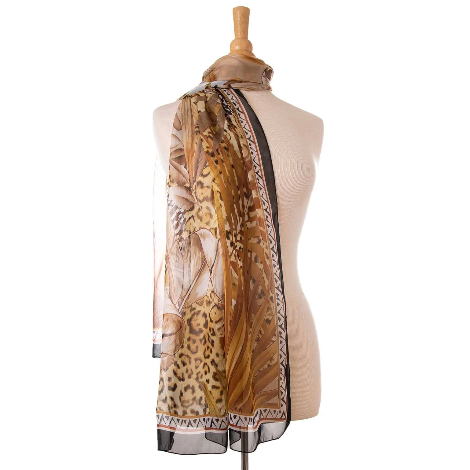 A leopard print silk scarf to update your look. Delicate, soft silk chiffon printed with an animal motif and large enough to be worn as a shawl or a long scarf.