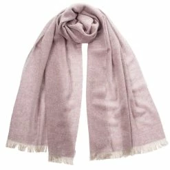 Superfine yarns in a pale beige and lavender give this wrap a heathered look and exquisite softness. Versatile, it can be worn as a scarf or draped as a shawl, either way, it will become a favorite this winter.