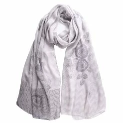 A subtle rose and chevron print on silver grey lustrous silk satin charmeuse will give your look a luxurious final touch. Versatile: this generously sized wrap can be worn as a shawl or as a large dress scarf.