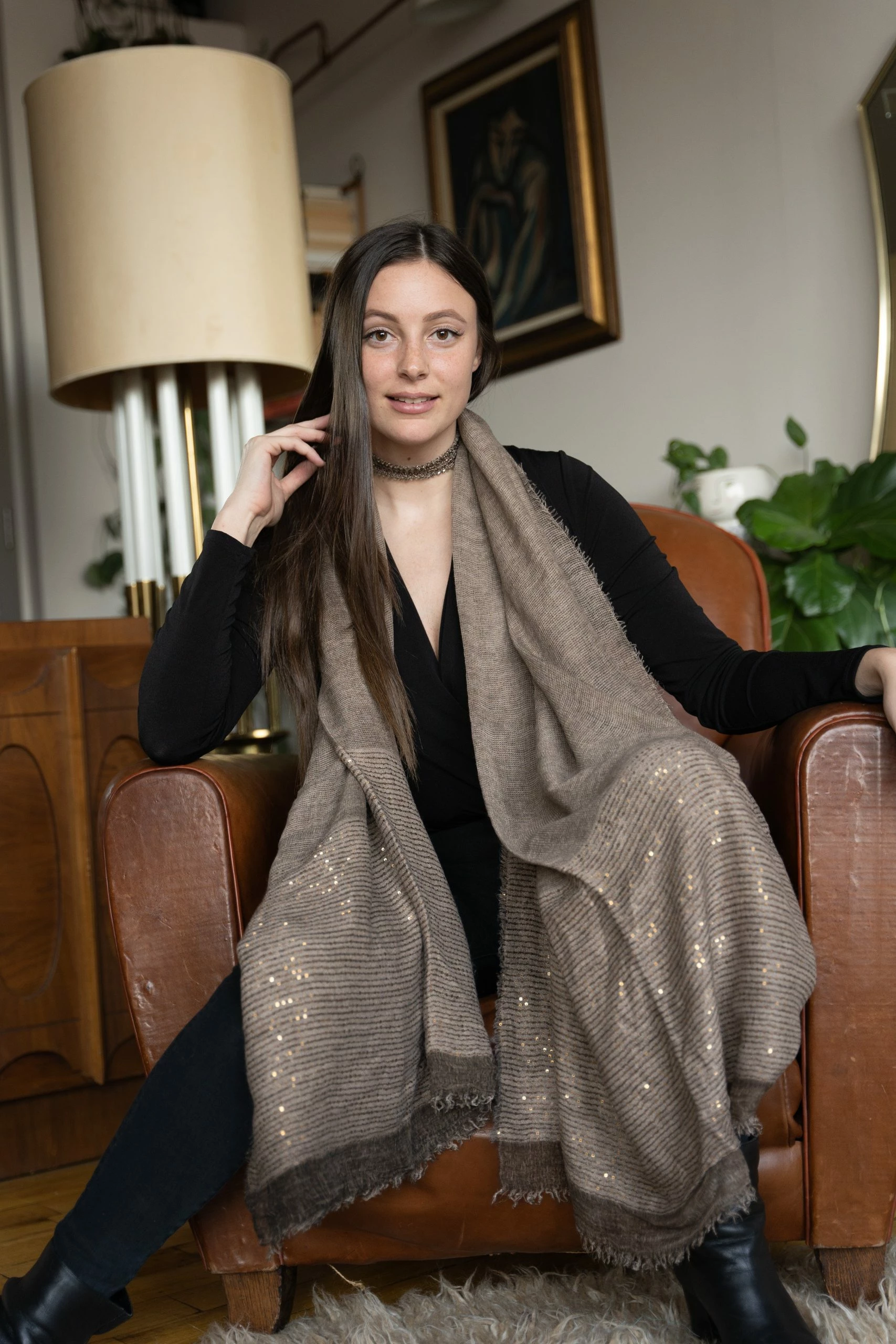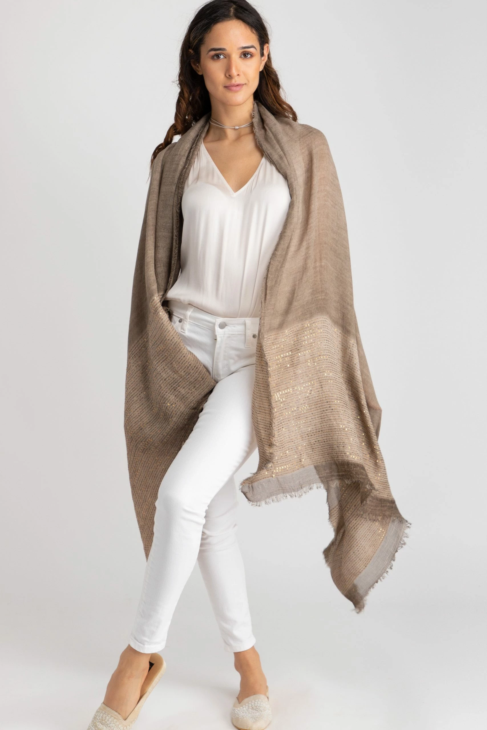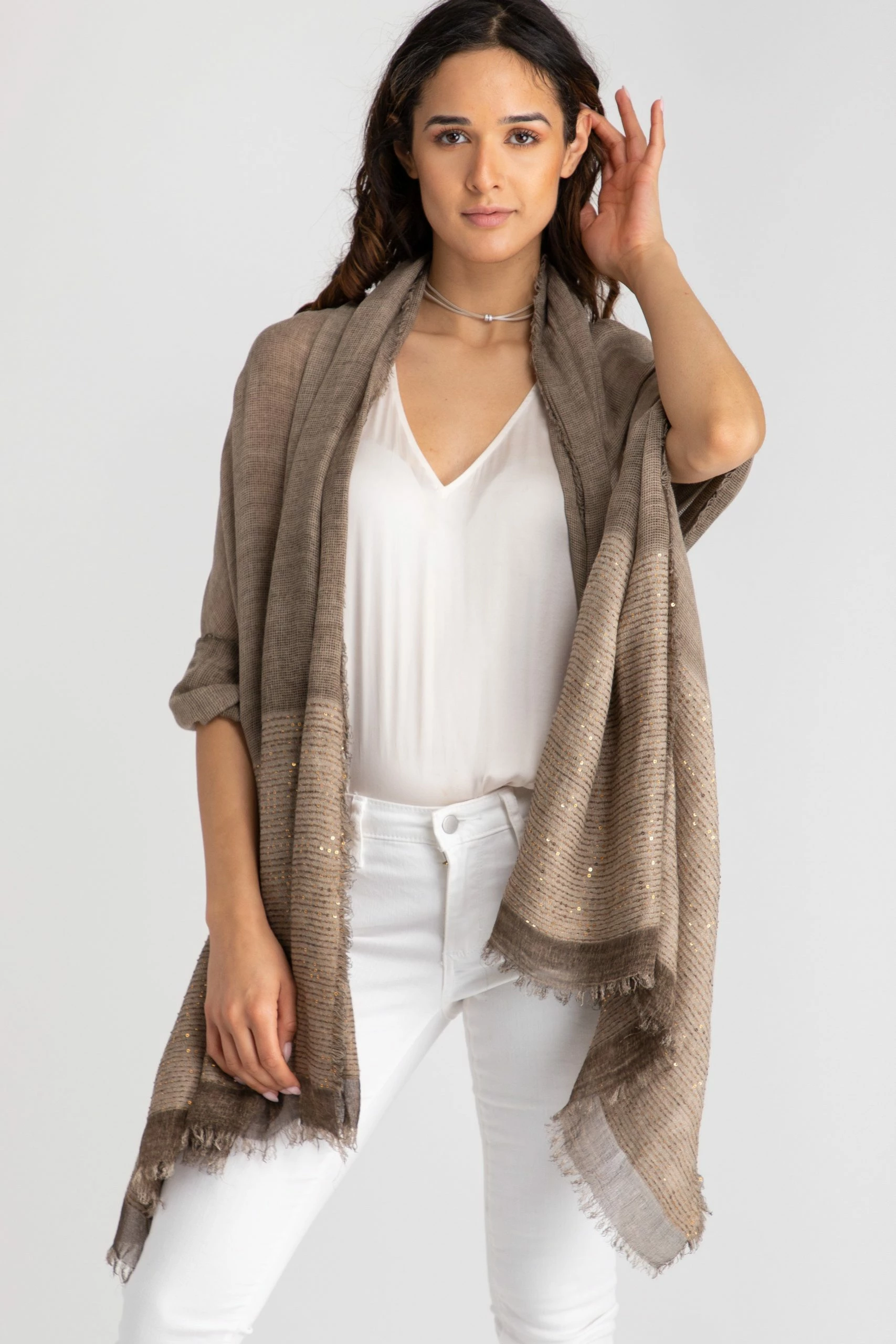 A shimmering scarf with gorgeous sequin detailing, this wrap is lofty and oversized and can pair with any dressy outfit and suit a variety of occasions.