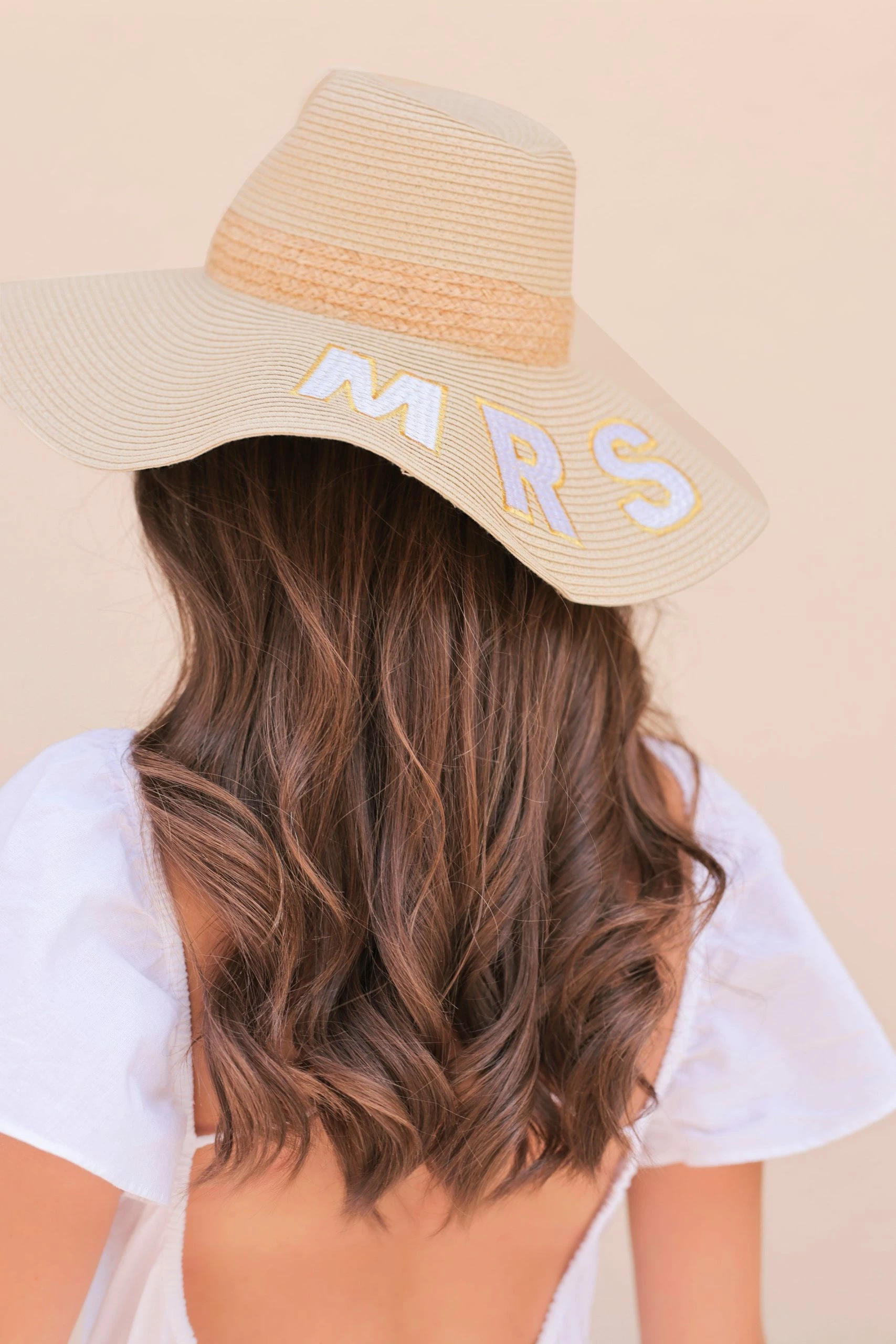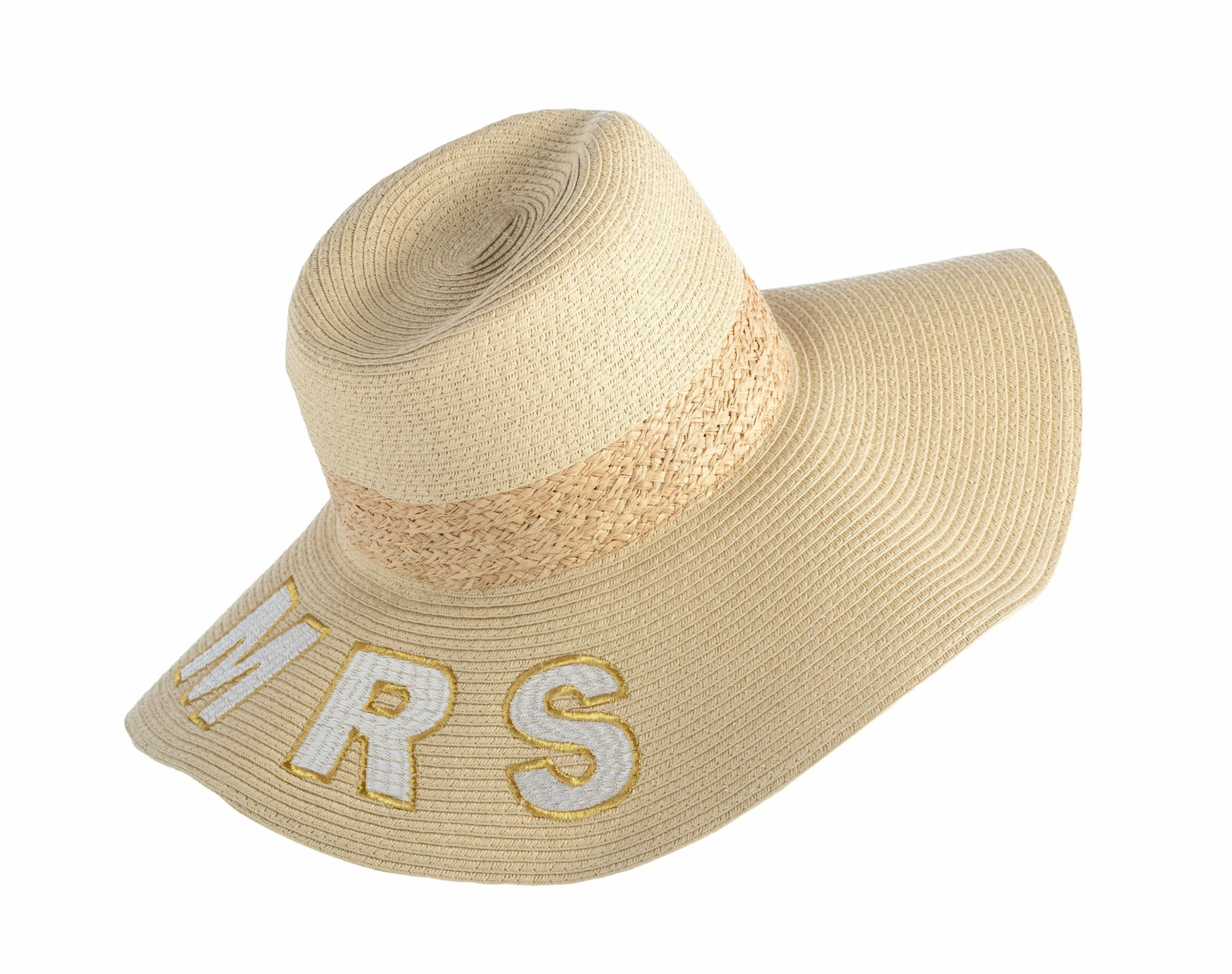 Perfect for the newly wed in your life, Shiraleah’s “Mrs” Hat offers an updated take on a classic silhouette. This hat features a natural color, with “Mrs” written in white block text, and outlined in gold, giving it a modern flair. Made from paper straw, this hat is the perfect honeymoon accessory.