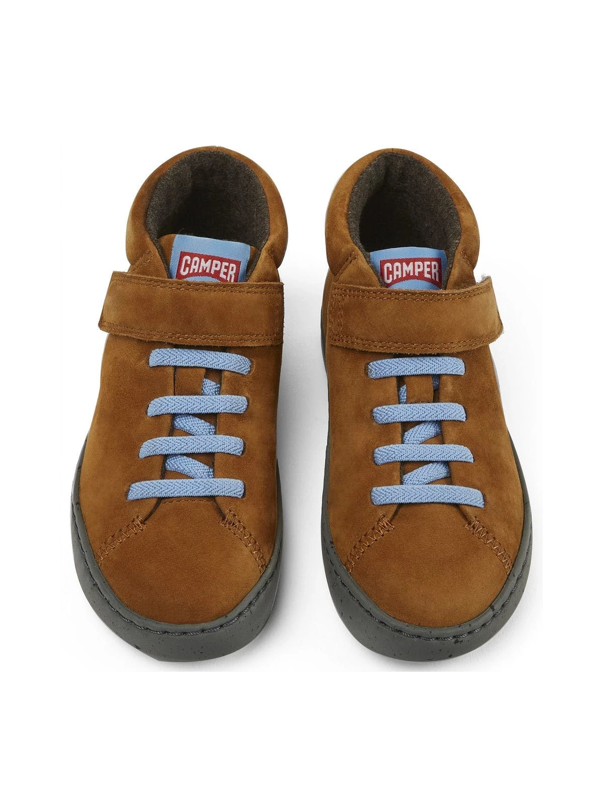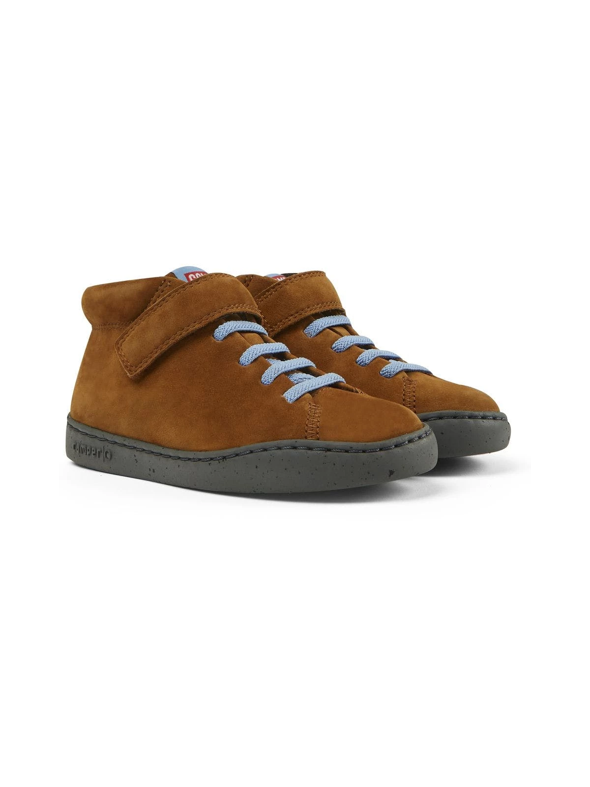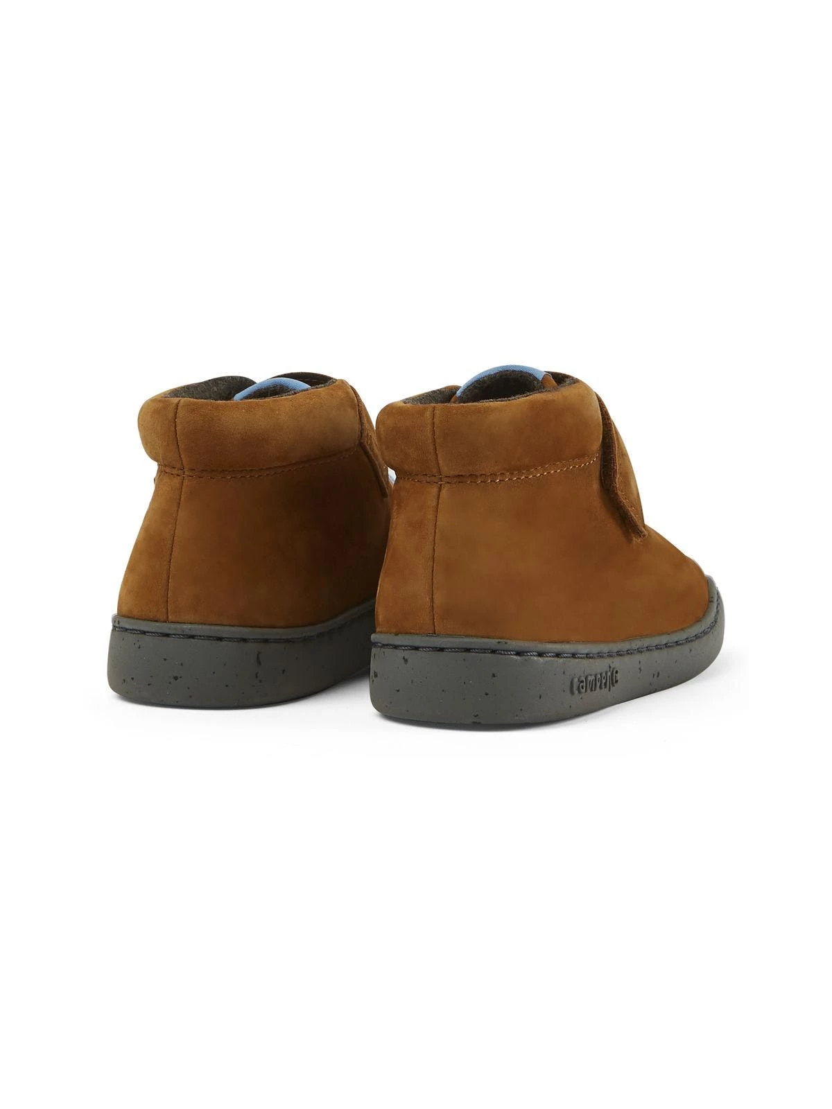 Brown nubuck boots for kids with hook & loop closing system, Ortho Lite® removable footbed and 100% EVA outsoles (20% recycled)Peu touring is a sportier version of iconic Peu, enhanced with technical upgrades and a recognizable curve on the outsole.